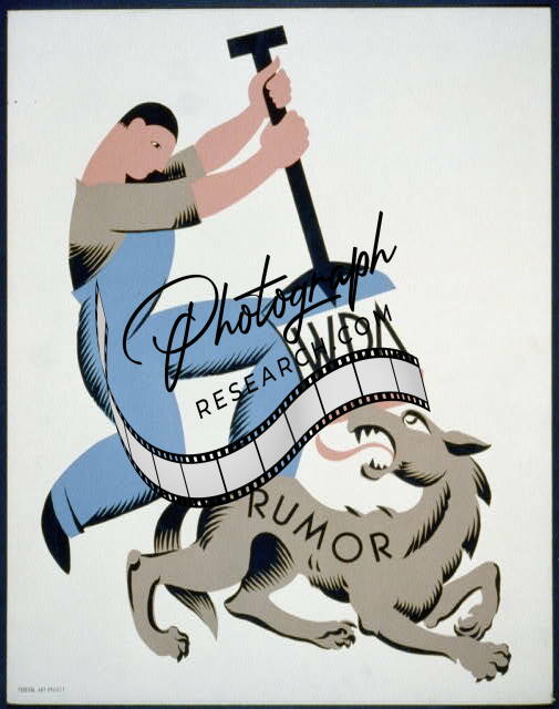 WPA Rumor,Shovel attacking wolf labeled rumor,Man,c1940