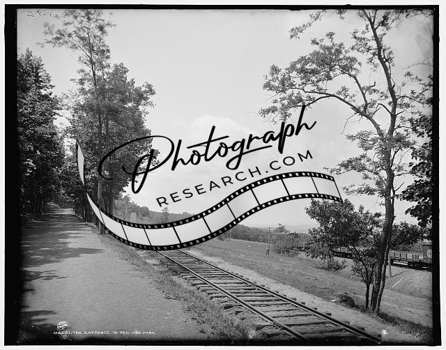 Entrance,Pen-Mar Park,tracks,trees,Western Maryland Railroad Company,MD,1900