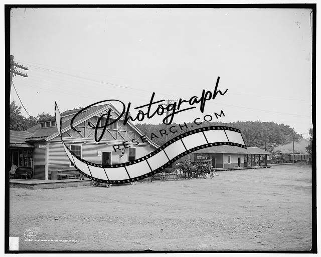 Railroad station,carriages,coaches,automobiles,Magnolia,Massachusetts,MA,c1906