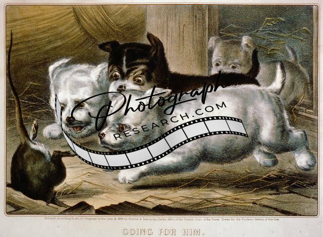 Going for him,c1868,Currier & Ives,Photograph,puppies chasing rat,dogs
