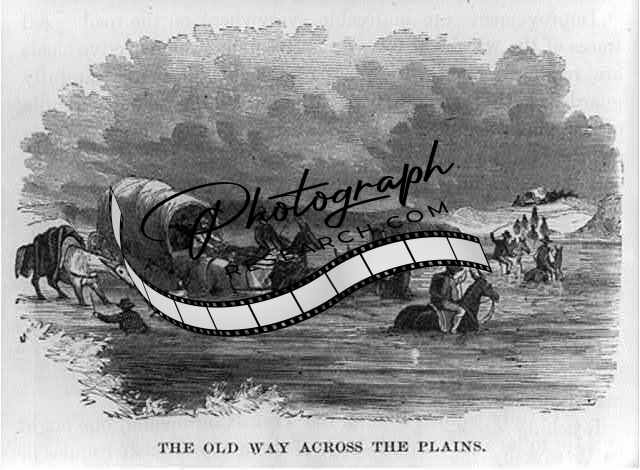 Old way across the plains,Wagon train crossing river,horses?,Westward Movement