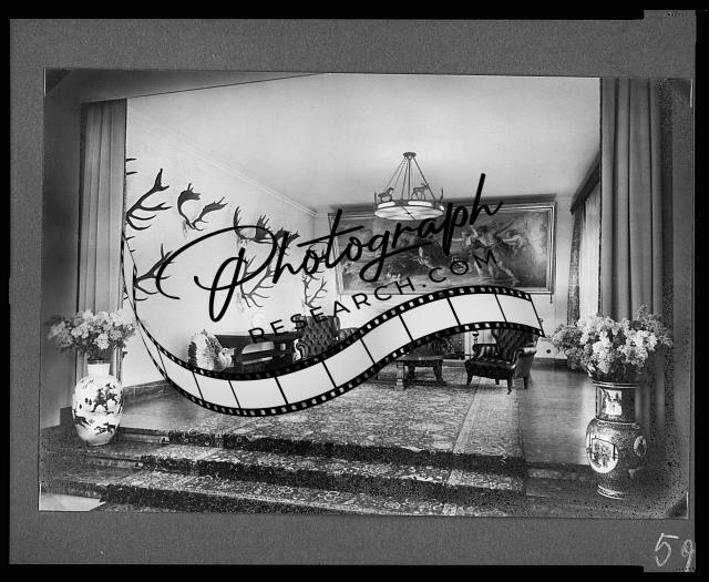 [Leipziger Platz 11a after rennovation] Furnishings, including large painting and antlers on the walls, at Göring's Berlin residence.