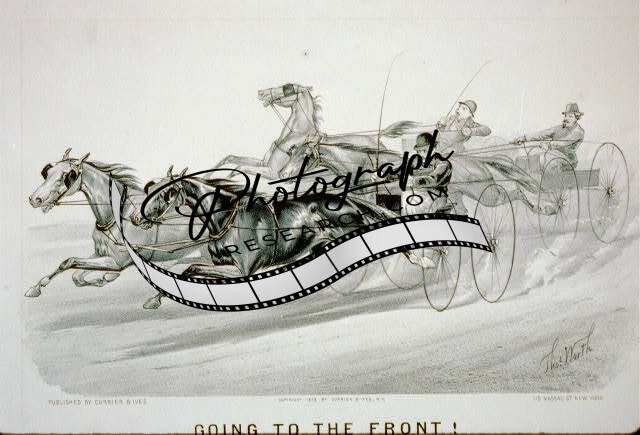 Going to the front!,c1878,Currier & Ives Photograph,horse racing,men,carts