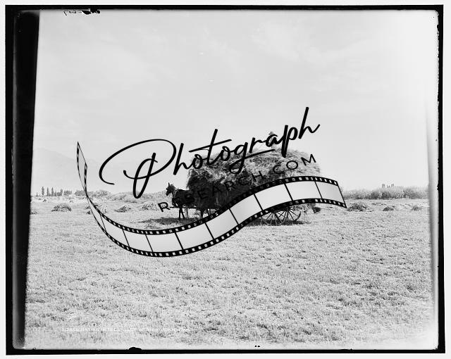 Haying,valley,harvesting,carts,wagons,hay,Jordan River Valley,Utah,UT,c1900
