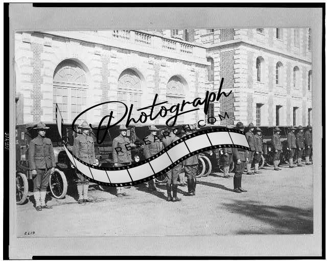 American military hospital,motor ambulance,men,front of building ready to start