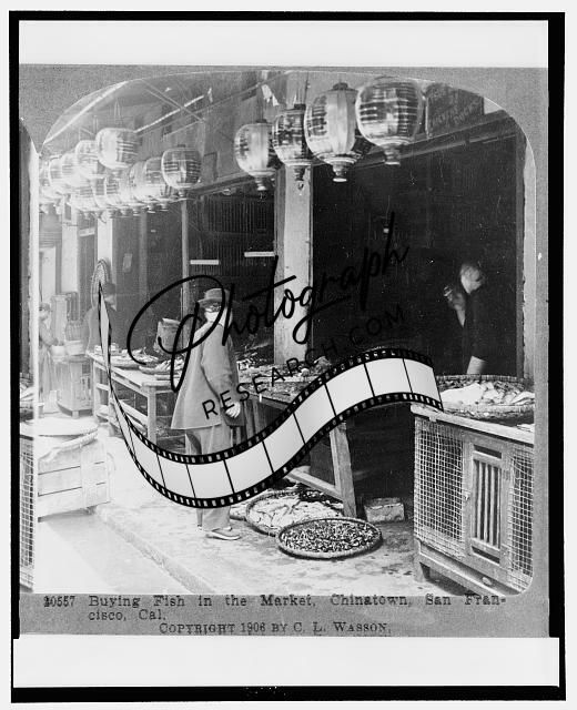 Buying fish in market,Chinatown,San Francisco,California,CA,c1906,Food vendor