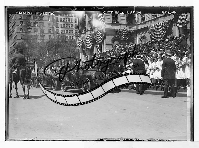 Olympic Athletes Parade,marchers before City Hall,New York,NY,1908,US Flags