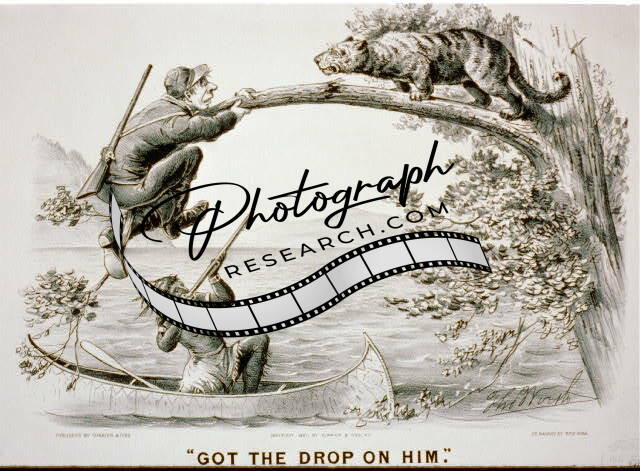 'Got the drop on him',Thomas Worth,c1881,Currier & Ives,Photograph,canoe,rifles