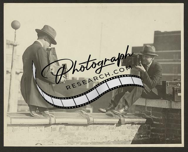 Photographers taking each others' picture,hand-held camera,roof,photography,1909