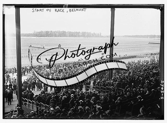 Start of race,Belmont,Horse Racing,June 2,1913,spectators,stands,horses,track