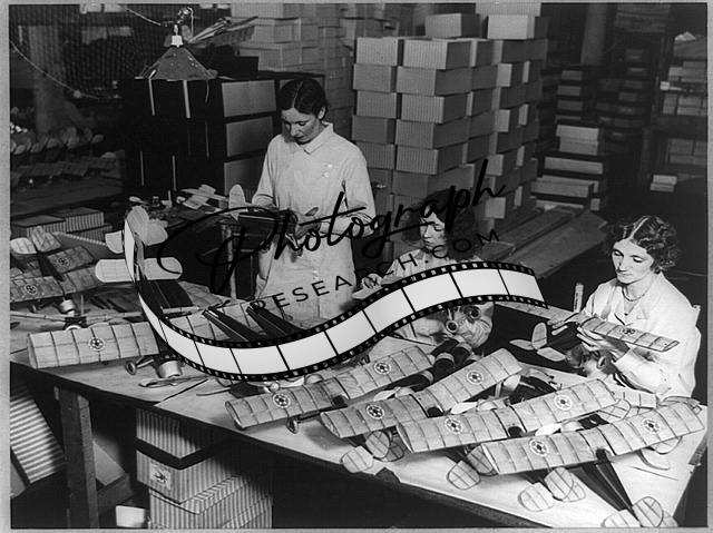 Getting ready,Christmas,toy industry,model airplanes,women,employement,IL,1930