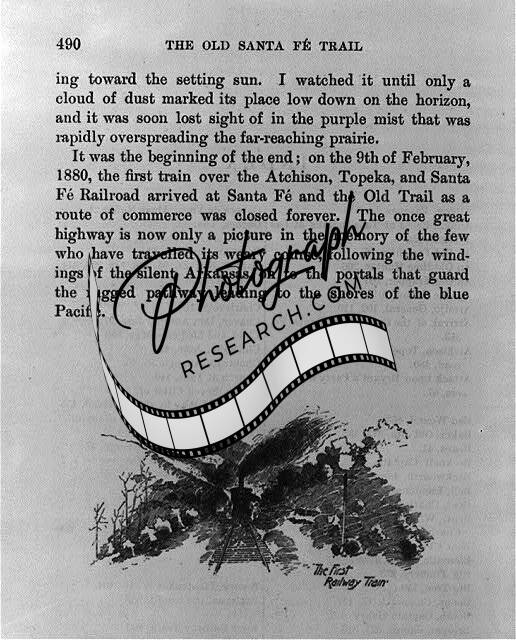 Caption card tracings: West Trapping; West Transport.; West Santa Fe Train; N.M. Santa Fe; RR-; Stage Coaches; Pack trains.