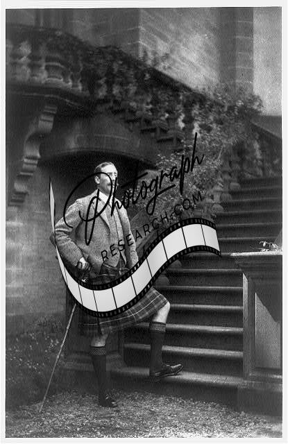 Baron Simon Joseph Fraser Lovat,kilt,walking stick,outdoors,steps,stairs,c1908