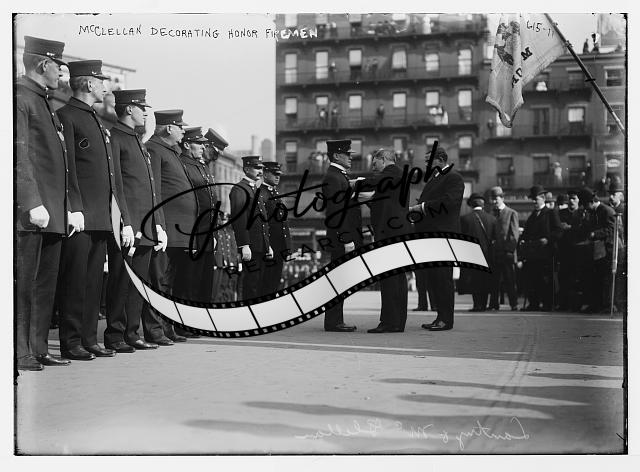 Mayor George Brinton McClellan,Jr,1865-1940,pinning medals on honor fireman
