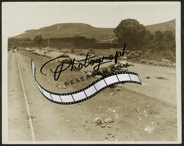 Dead horses lying on the road during the Mexican Revolution,1913-1920,Mexico
