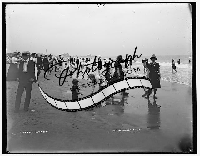 Coney Island beach,crowds,swimmers,New York,NY,Detroit Publishing Company,1901 1