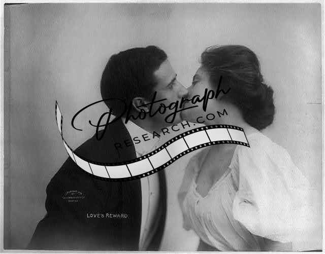 Love's Reward,man and woman kissing,c1908,Suit,dress