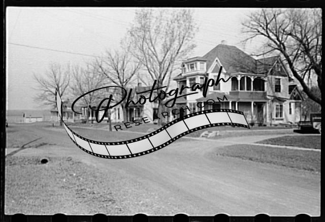 Residential street,Grundy Center,Iowa,IA,April 1940,John Vachon,FSA,Houses