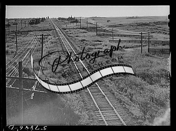 Freight train going west from Minot,North Dakota,across the plains,ND,FSA