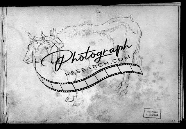 Ox with yoke,Emanuel Leutze,1816-1868,Pencil Sketch