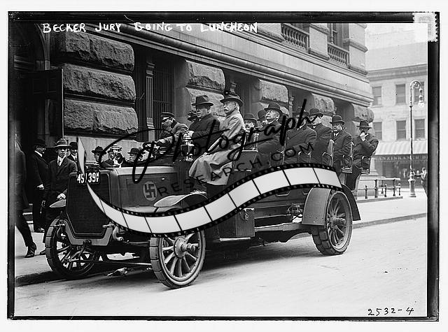 Becker jury going,luncheon,automobiles,transportation,Bain New Service,1914