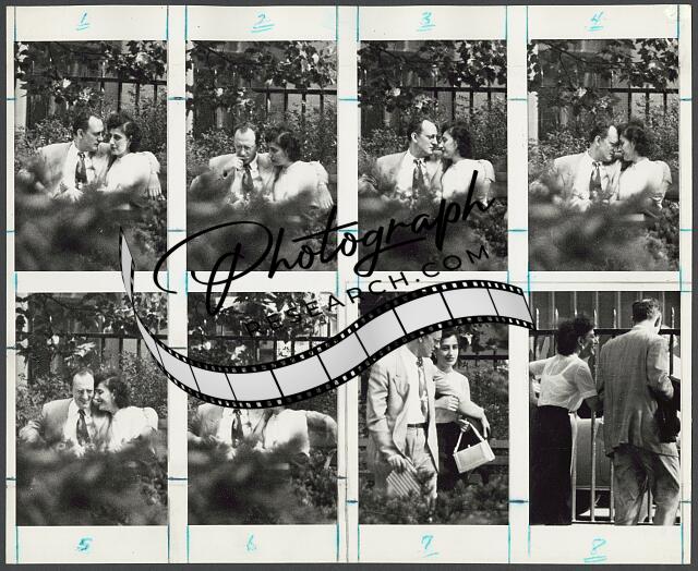 [[Composite photograph of eight images, candid shots of man and woman, seated on