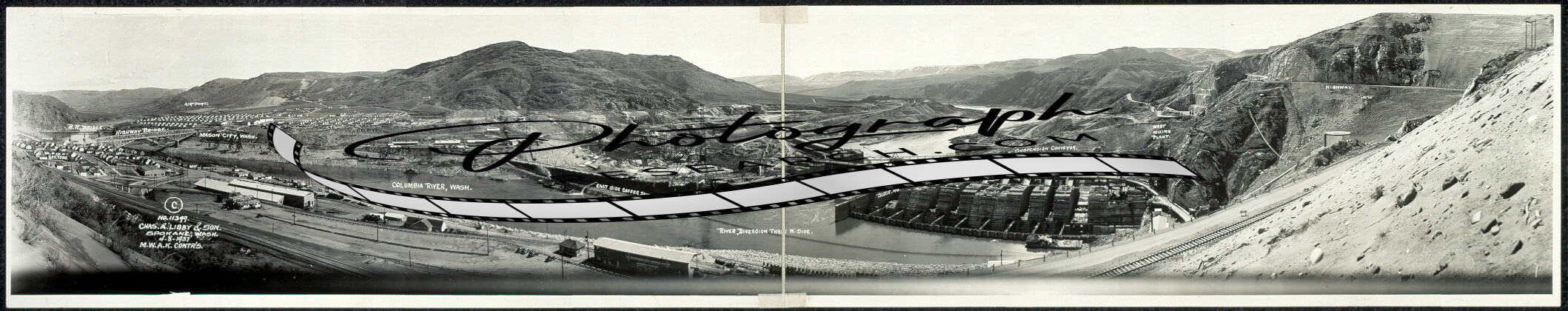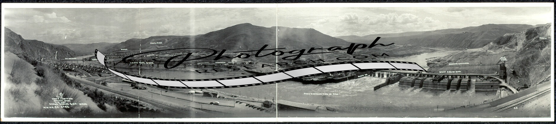1934 Panoramic: Bonneville Dam site,power & locks,Washington