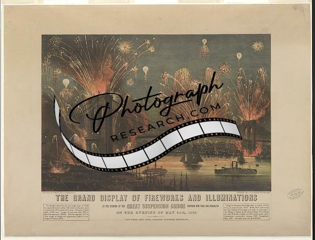 The grand display of fireworks and illuminations: at the opening of the great suspension bridge between New York and Brooklyn on the evening of May 24th, 1883