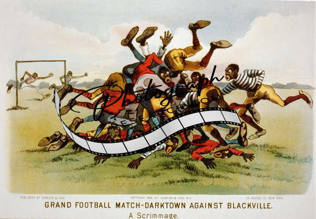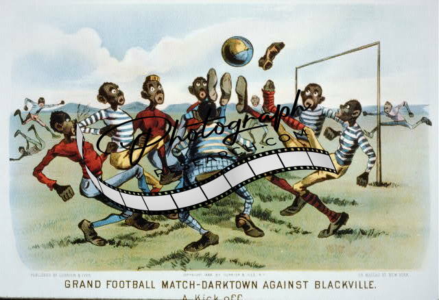 Grand football match,darktown against Blackville,kick off,Darktown Comics,c1888