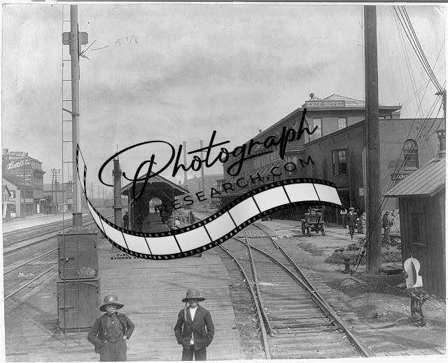 Atlantic City,N. J.,1896. Busses horse-drawn carriages railroad depot