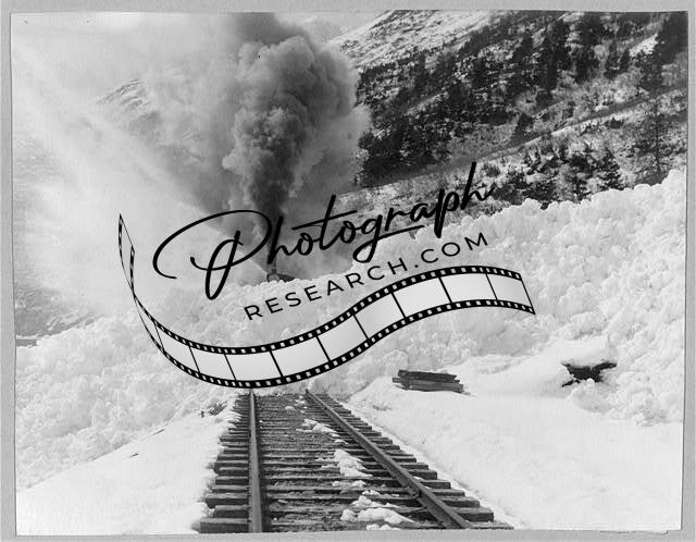 Avalanche of snow across railroad tracks,Train,Locomotive,RR,1900-1930