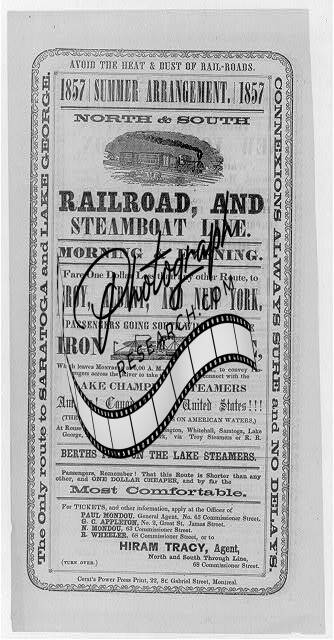 1857,Summer Arrangement,North & South Railroad,Steamboat Line,Troy,Albany,NY