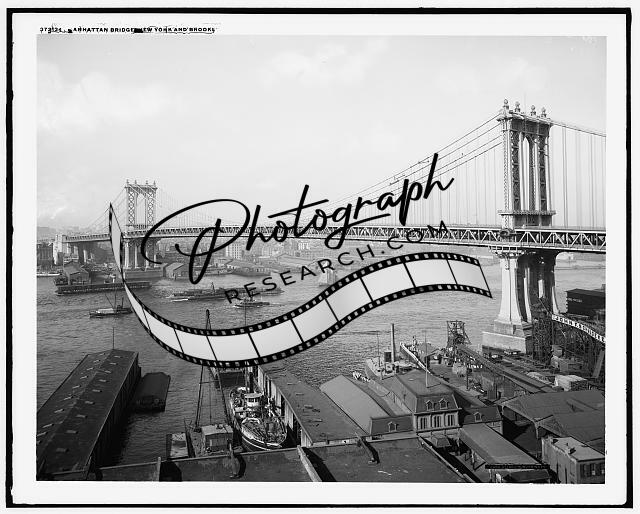 Manhattan Bridge,piers,wharves,New York,Brooklyn,NY,Detroit Publishing Co,c1910