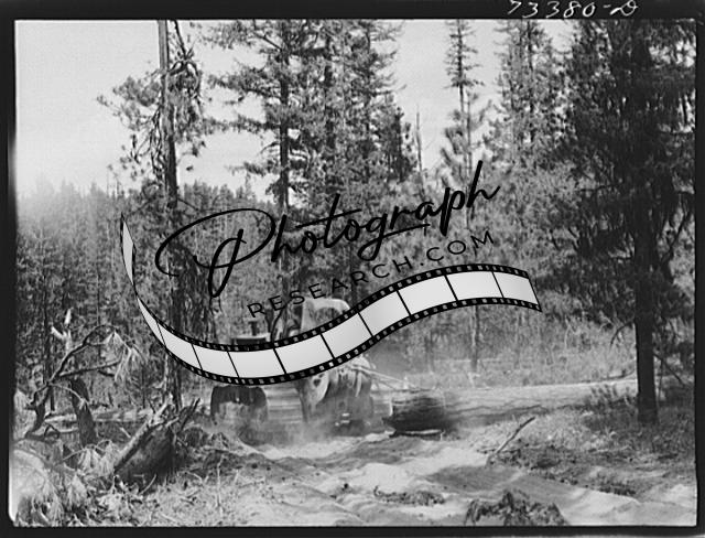 Title: Grant County, Oregon. Malheur National Forest. Caterpillar tractors bringing logs to central point for loading on trucks