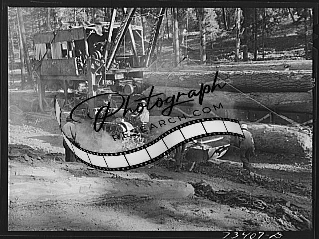 Title: Grant County, Oregon. Malheur National Forest. A McGiffart loading machine loading logs onto flatcars