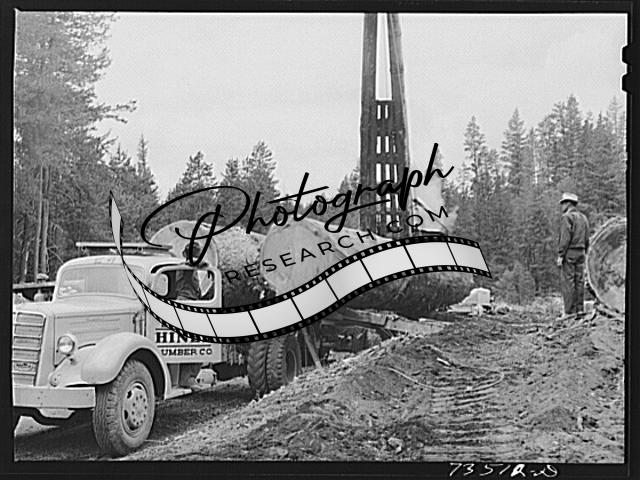 Title: Grant County, Oregon. Malheur National Forest. Loading large logs on truck