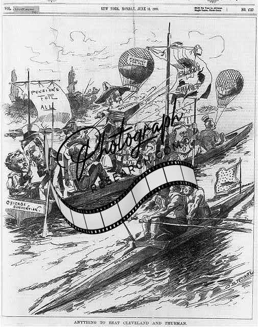 Political Cartoon,Benjamin Harrison,Cleveland,Thruman,Chicago Convention,1888