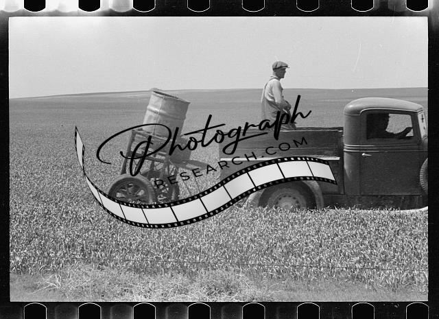 Farmers spreading poison grasshopper bait,Richland County,Montana,MT,June 1939,2