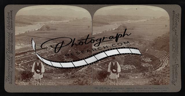Ruins of the theatre,largest in Greece,the Thersillion to left,N.E.,Megalopolis.