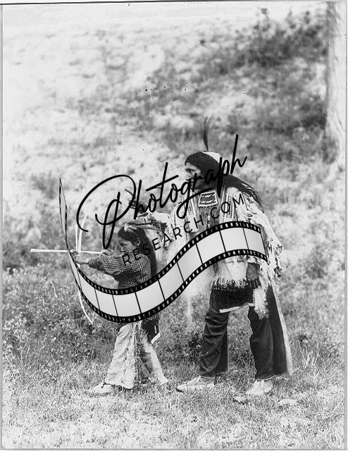Mato Wanarsaka,Indian,with child aiming bow and arrow