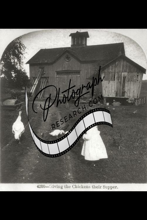 Giving Chickens their Supper,Small Girl Feeding Chickens,Country Life,c1897