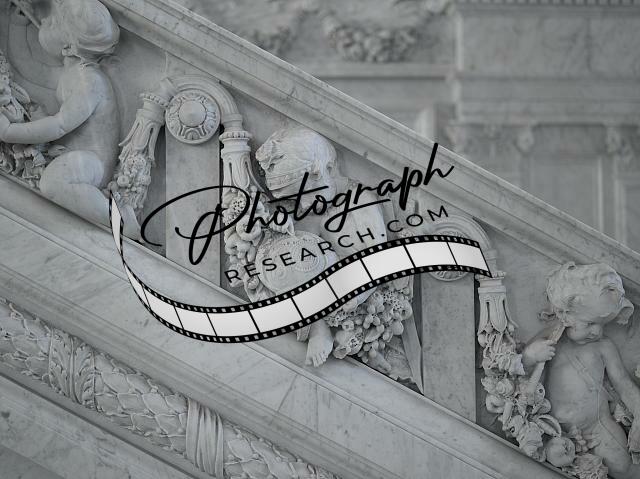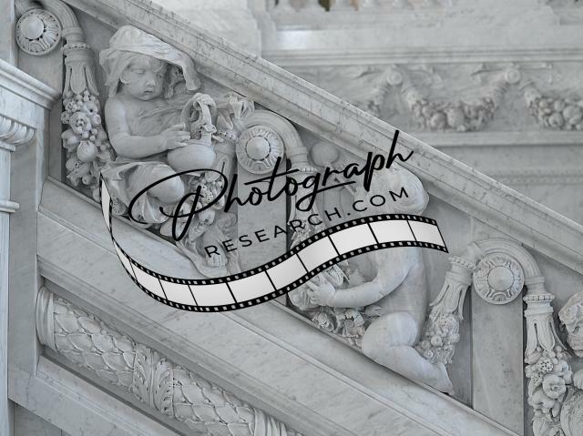 Title: [Great Hall. Detail of putti (Mars and fisherman) and cherub (America) on Grand staircase by Philip Martiny. Library of Congress Thomas Jefferson Building, Washington, D.C.]