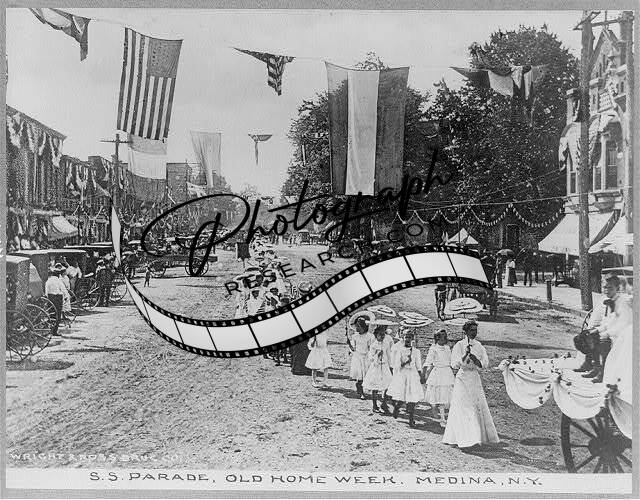 Sunday school parade,flag,Old Home Week,Medina,NY,c1900