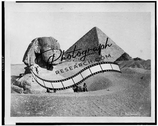 Sphinx,Great Pyramid,people,donkey,momuments,stone,Jizah,Egypt,E Bechard,1877