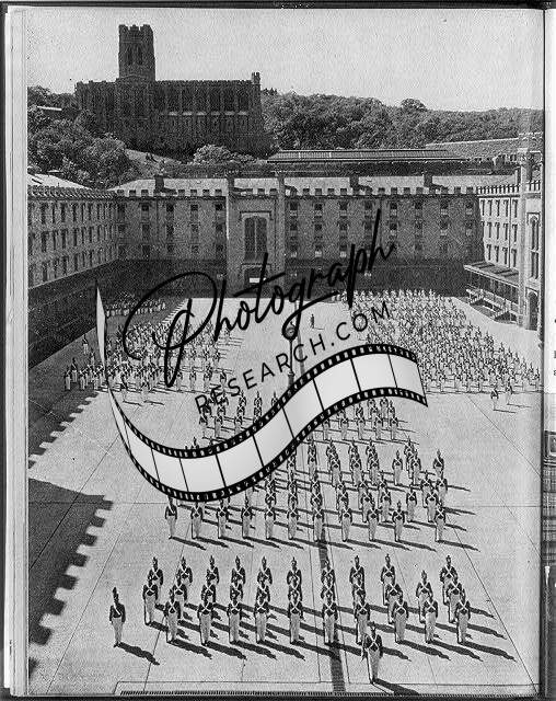 West Point Cadets on parade in main quadrangle,Chapel,West Point,New York,1945