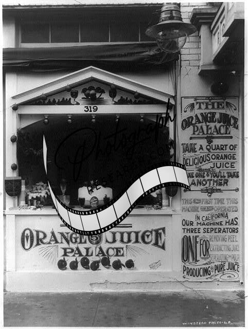 The Orange Juice Palace,an orange juice stand in California,CA,c1922,signs