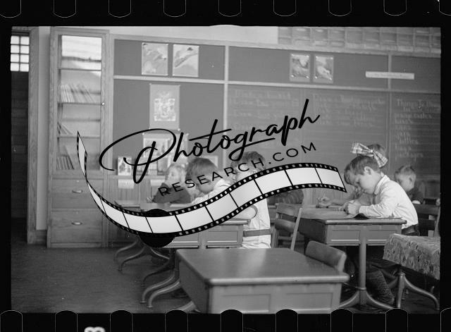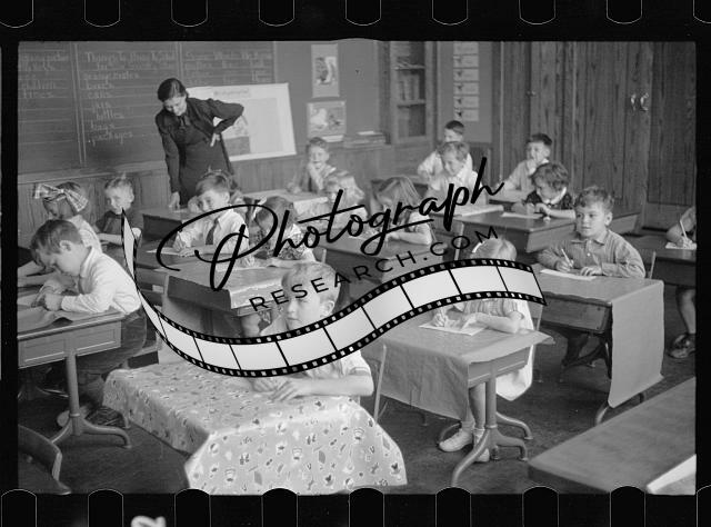 Greenbelt schoolroom,children,students,desks,boys,girls,chalkboard,Maryland,1937