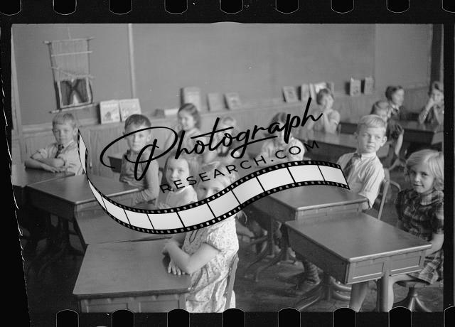 Greenbelt schoolroom,children,students,desks,boys,girls,cabinets,Maryland,1937