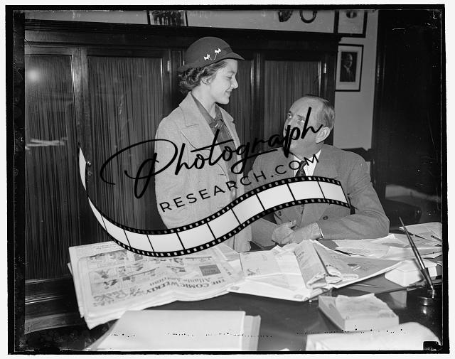 Title: Secretary Wallace greets 'Future Farmers of America.' Washington, D.C., May 4. Delegates from six seats are represented at the spring conference in the capital of the board of trustees, Future Farmers of America. Secretary of Agriculture Wallace greeted the delegates at the Agriculture Department. In the photograph, left to right: Elmo Johnson, Tenn.; Clar Nicholson, Maryland.; Joseph H. Black, of Wyoming, President and spokesman; William Shaffer, Virginia; Secretary Wallace; Julian Pierce, Kentucky; J. Phelon, Utah; Roy Martin, Texas; W.A. Ross, Executive Secretary; J.A. Linke, Advisor to the Organization, 5/4/1937