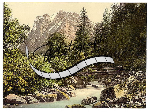 Title: [Grindelwald, footbridge and mountain peaks, Bernese Oberland, Switzerland]